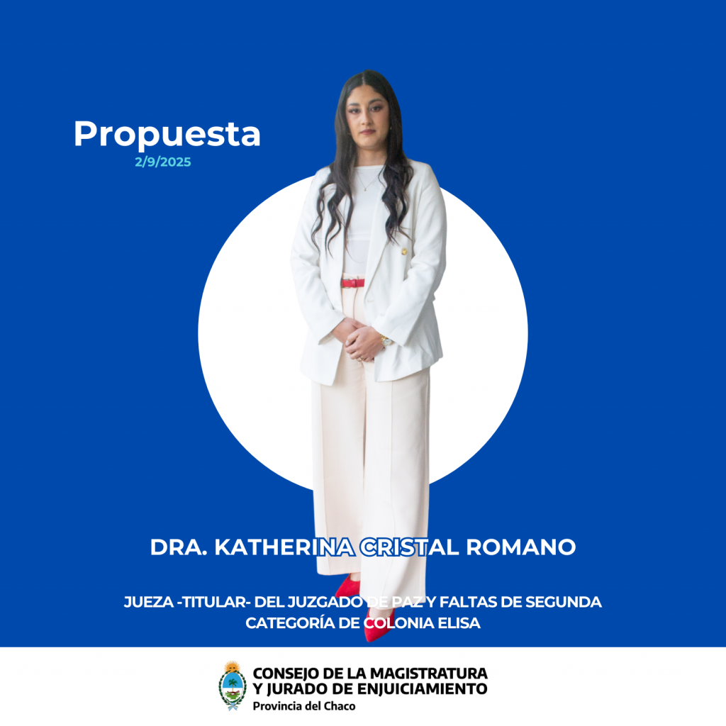 A la Dra. Katherina Cristal Romano por mayoría, para ocupar el cargo de Jueza Titular del Juzgado de Paz y Faltas de Segunda Categoría de Colonia Elisa.
