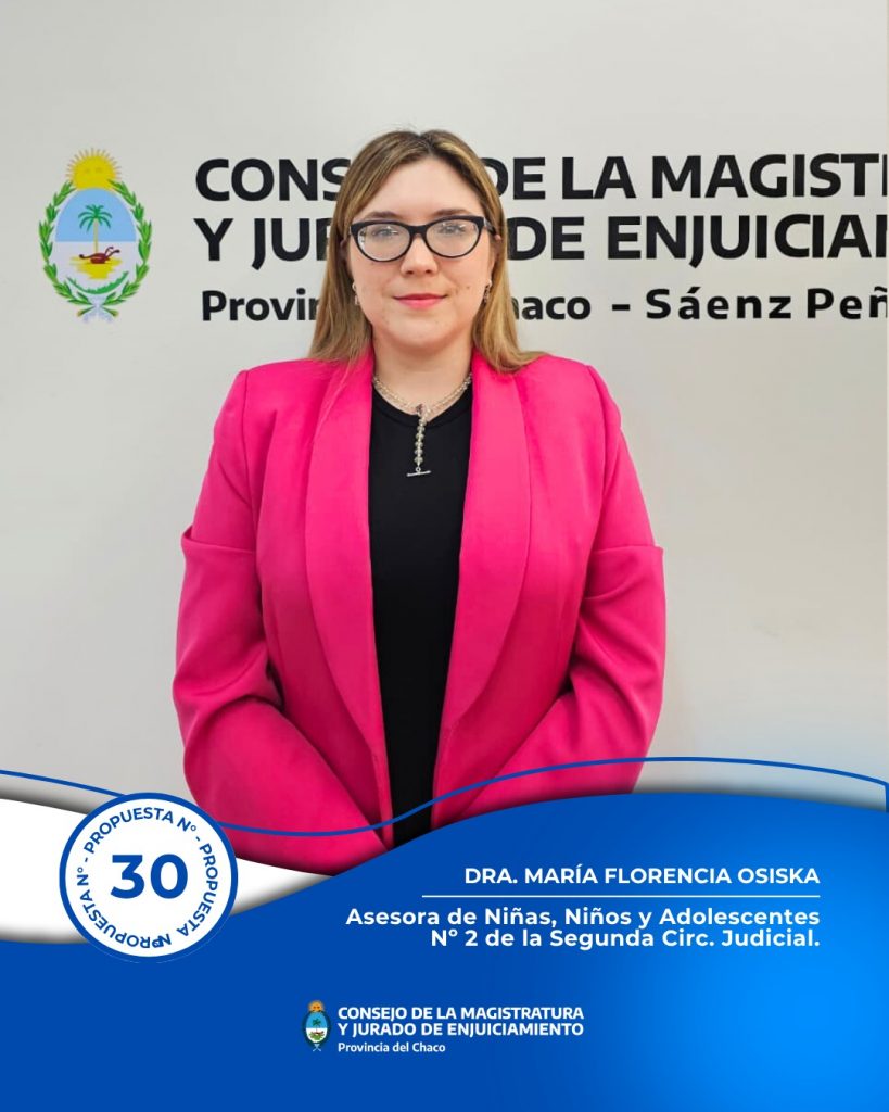 • Cargo de Asesora de Niñas, Niños y Adolescentes Nº 2 de la Segunda Circunscripción Judicial: Por mayoría fue propuesta la Dra. María Florencia Osiska con los votos de María Cecilia Arroyo, Ricardo José Urturi, Jorge Fernando Gómez, Carmen Noemí Delgado y Víctor Emilio del Río. Los consejeros Sergio Andrés Bosch y Rubén Omar Guillón votaron por la Dra. Patricia Rosana Dickau.